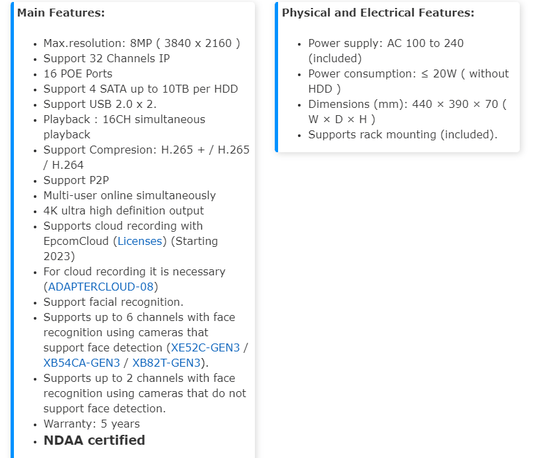 NVR 8MP (4K) 32 Channels IP 16 POE Ports H.265+ Video Output in 4K XR432/16-GEN3