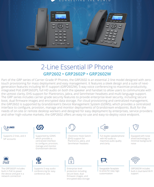 Grandstream GRP2612G 2-line Carrier-Grade IP Phone HD audio color LCD