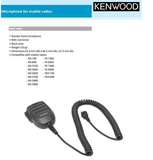 KENWOOD KMC-60M Standard Microphone for Mobile Radios NX-740 TK-7302 TKD-740
