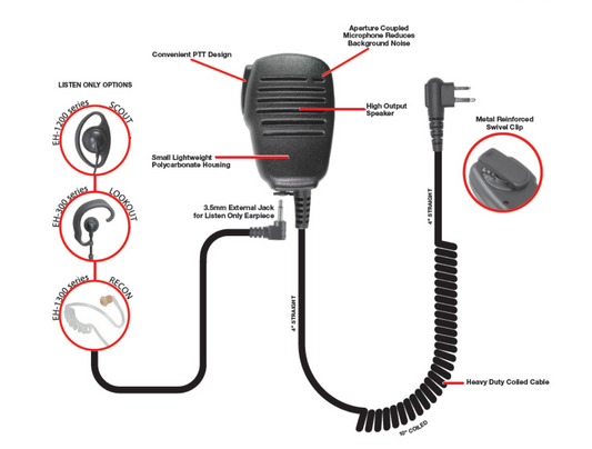 Pryme SPM-201 Earphone for Radios KENWOOD PTT button NX-220 NX-240 3230 2170