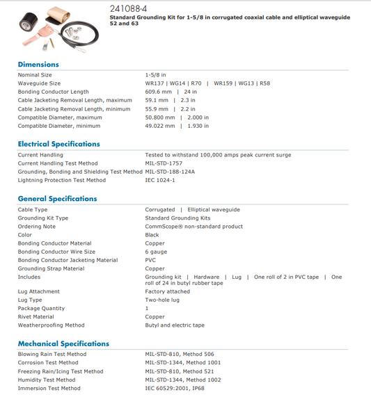 Andrew 241-0884 Standard Grounding Kit for 1-5/8 in Corrugated Coaxial Cable