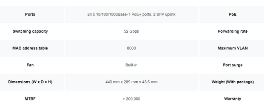 RUIJIE RG-ES226GC-P Smart PoE Switch with 24 Gigabit PoE 802.3af/at ports +2 SFP