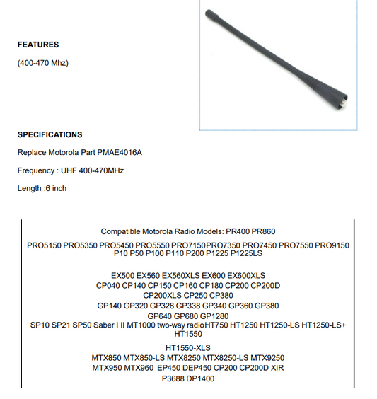 Replacement UHF Antenna 400-470 MHz for Motorola PRO5150 EP450 DEP450 CP200D