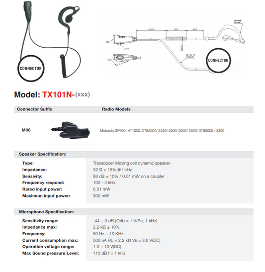Replacement Earpiece Lapel Microphone Adjustable Motorola Radios XTS2000 HT1000