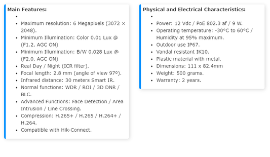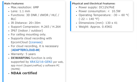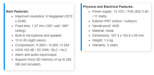 IP Camera Turret 6 MP 30 mts IR EXIR Exterior IP66 WDR 120 dB PoE Integrated Mic