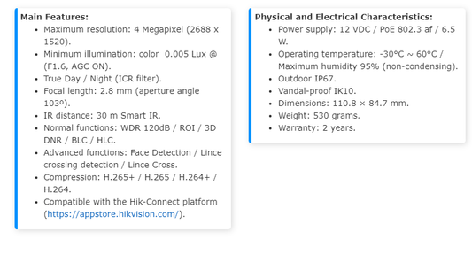 IP Camera Dome 4MP 2.8 mm Lens 40 mts IR EXIR IP67 IK10 WDR 120 dB PoE XD24S