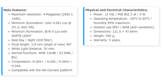 Camera IP Bullet 4 Megapixel WDR POE 98ft (30m) IP67 Micro SD XB42ZC-GEN3