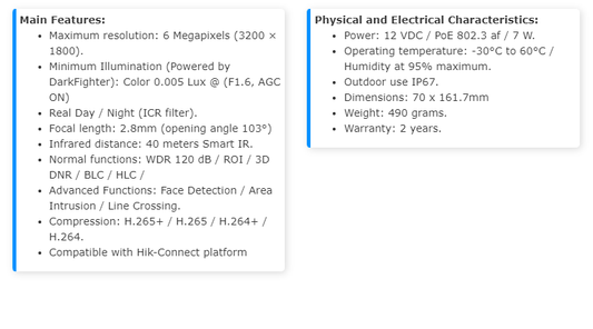 Bullet IP Camera 6 MP Lens 2.8 mm 40 mts IR EXIR Outdoor IP67 WDR 120 dB PoE