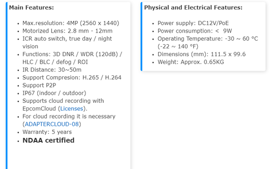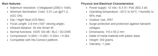 4 MP Bullet IP Camera Lens 2.8 mm SENSE PLUS LITE COLORPLUS H.265+ IP67 XB-14CSL