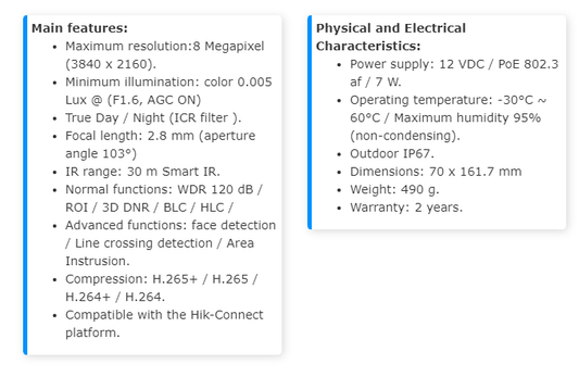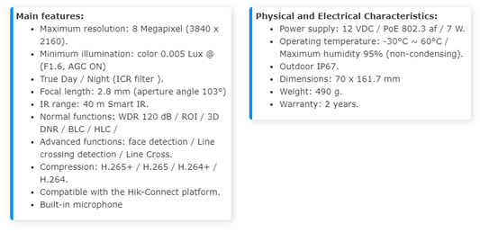 Bullet IP Camera 8 MP (4K) Lens 2.8 mm, 40 mts IR EXIR, Outdoor IP67, PoE XB28S